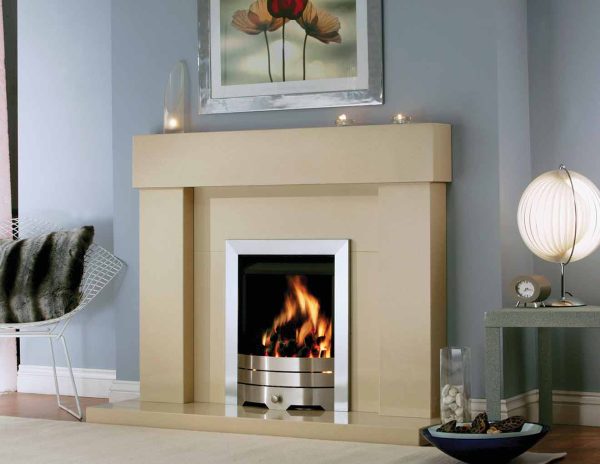 Marfil Stone Suite with matching hearth and back panel.