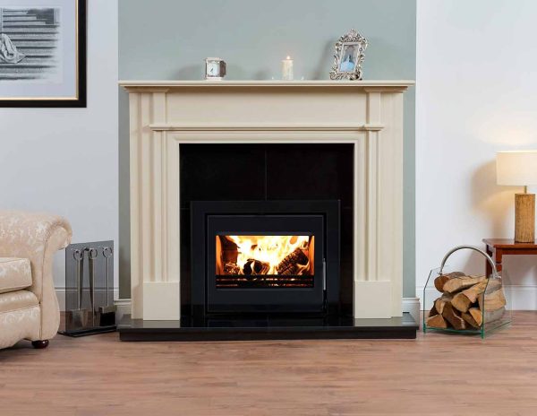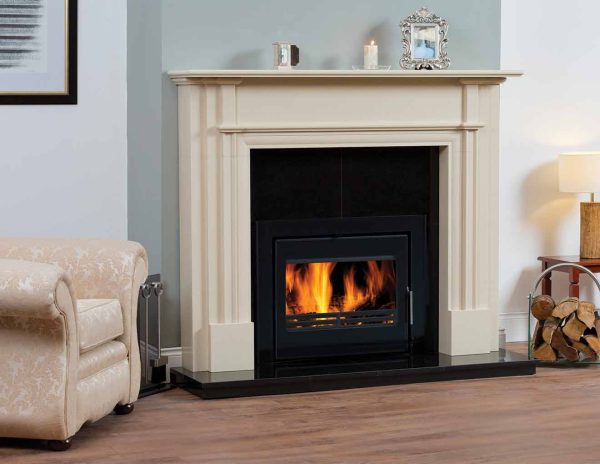 Pictured with black granite hearth, back panel and Vitae 11kW Cassette Stove.